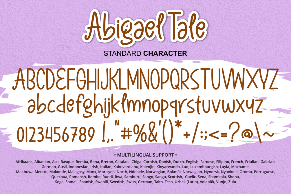 Embrace the fun and cheerful personality of Abigael Tale Font to add a touch of magic and joy to your next design project!