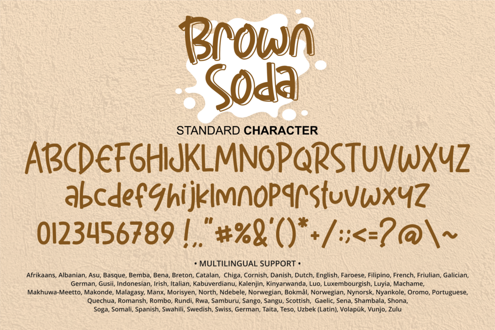 Brown Soda is a cute display font perfect for posters, logos, magazines, book covers, banners, and many more! Get this amazing font, and use it to create lovely designs. It can easily be matched to an incredibly large set of projects, so add it to your creative ideas and notice how it makes them stand out!