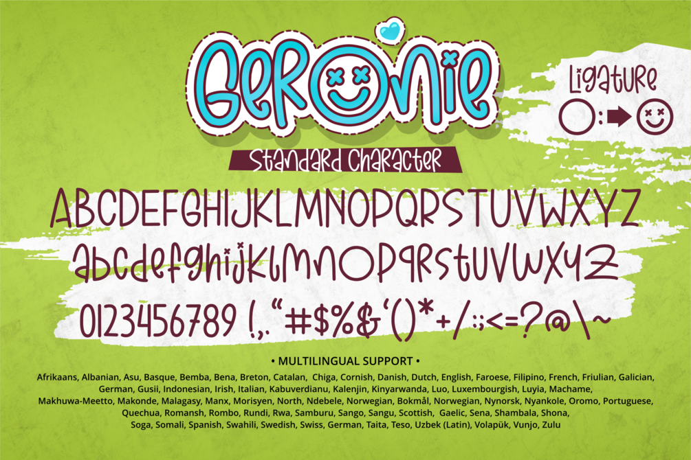 Perfect for children's books, greeting cards, and playful branding, Geronie Font's rounded edges and bubbly letterforms create an inviting and friendly appearance. Its versatile style ensures it stands out in both large and small text, making it a great choice for headlines, logos, and creative designs.